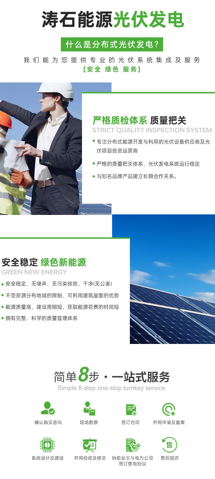 涛石能源有限公司一家专注分布式能源开发与利用的光伏设备供应商及光伏项目投资运营商。我们拥有专业的管理队伍,行业专家,纵深一体化整合体系,为我们的产品质优价廉提供...